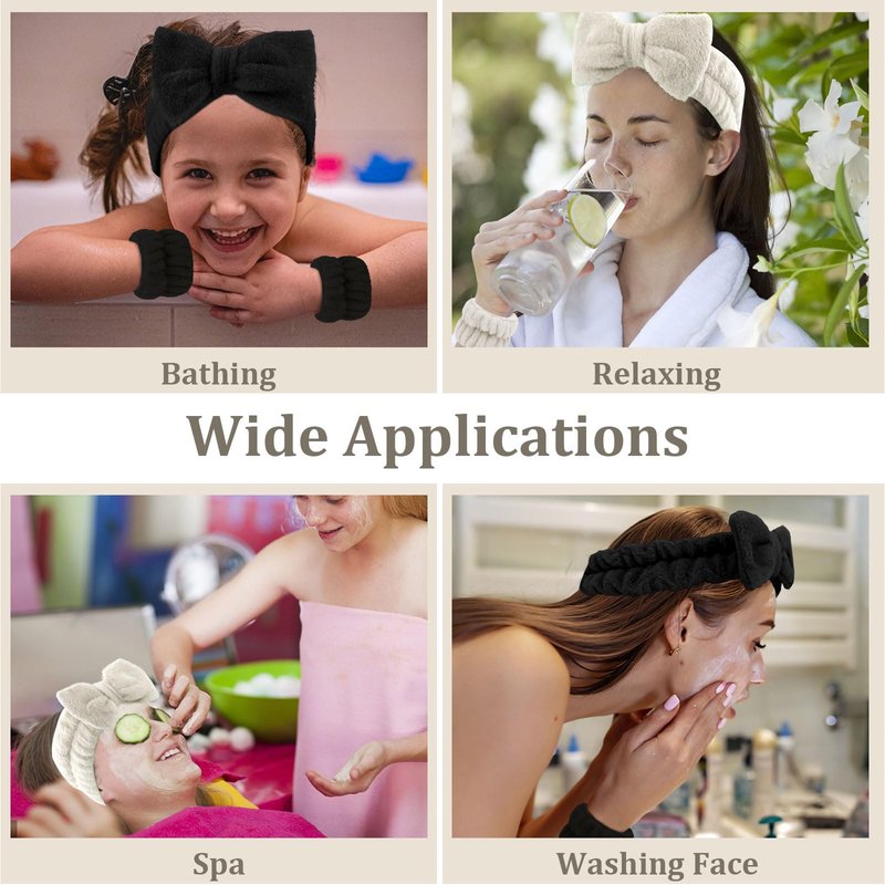 - Keeps Water from Going Everywhere: The spa head bands for women's hair could keep water and soap from getting in your eyes, the wrist bands are wonderful for keeping water from running down your arms. You could use these cleaning accessories to enjoy your skincare routine.