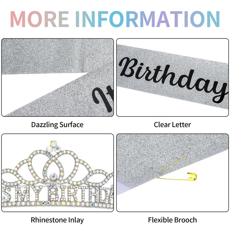 - Perfect for Women in Every Age: The birthday tiara and sash are suitable for 21st 30th 40th 50th 60th or any other age birthday celebrations! Get it for once, but you can use it for your every update birthday.