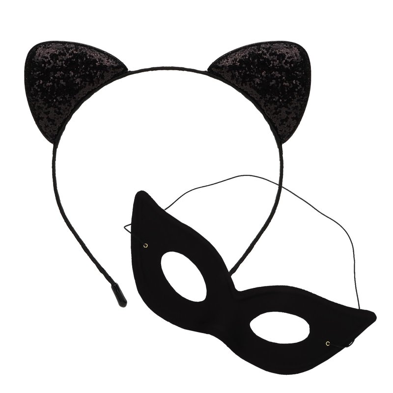 ACO-UINT Cat Ears Headband and Cat Mask Set, Black Cat Hairband Cat Mask Costume Cat Birthday Party Decoration, Party Favors Halloween Mask for Adult