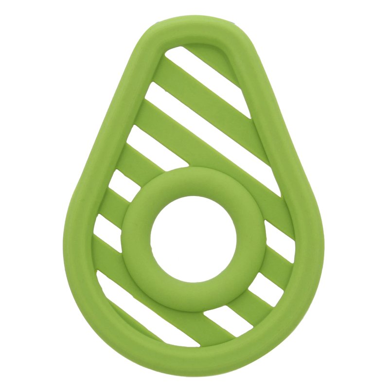 - [Contents]: Package includes 1 lime green avocado shaped teething freezer toy; The silicone teething toy measures 4.1 x 3 x 0.1 inches (10 x 7.6 x 0.3cm)