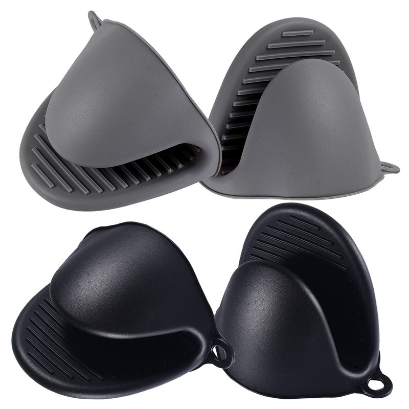 Acronde 2 Pairs Mini Oven Gloves Silicone Heat Resistant Cooking Pinch Mitts Potholder for Kitchen Cooking & Baking (Black and Grey)