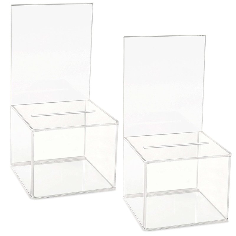 Acrylic Charity Donation Ballot box Fundraising Coin collection Tip box 5" x 5" x 4" office Suggestion Box Piggy Bank ticket bucket with 4" x 6" Sign Poster Display area(2 Pack)