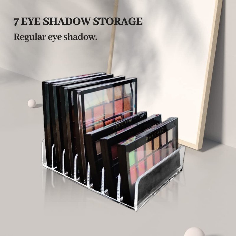 - Designed with 7 separate slots,so the professional level makeup palette organizer can storage larger or small eyeshadow palettes ,great for make up and other personal items. Took up little space but had lots of space to storage