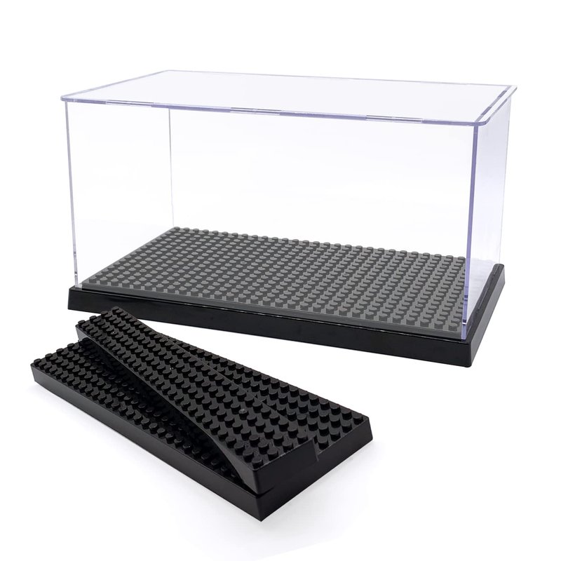 Acrylic Display Case for Figures Dustproof, Clear Display Box with Building Base, Collection Bricks Storage Blocks Aciton Figure Showcase(Black)