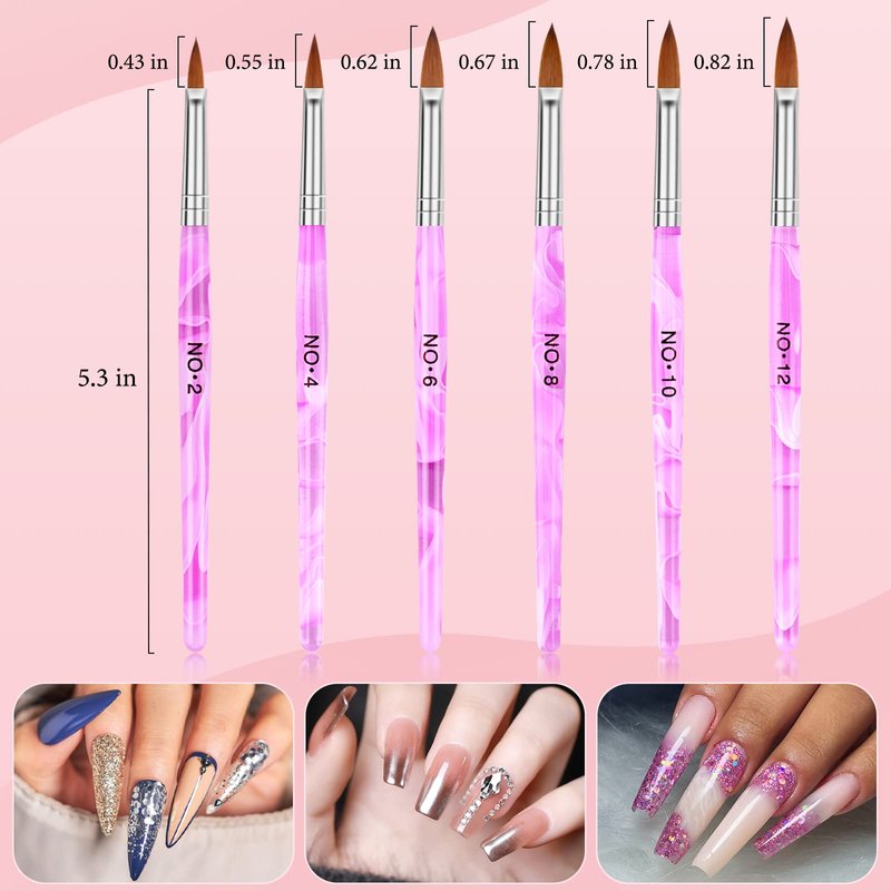 - UV Gel Nail Brush: 6pcs different sizes UV Gel Nail Art Brush with advanced nylon hair, these UV Gel Brush are mainly used to UV nail and French Nails, drawing exquisite painted patterns, plaid and flowers and so on.