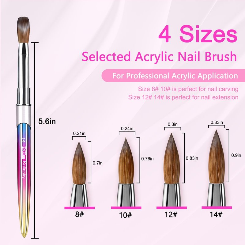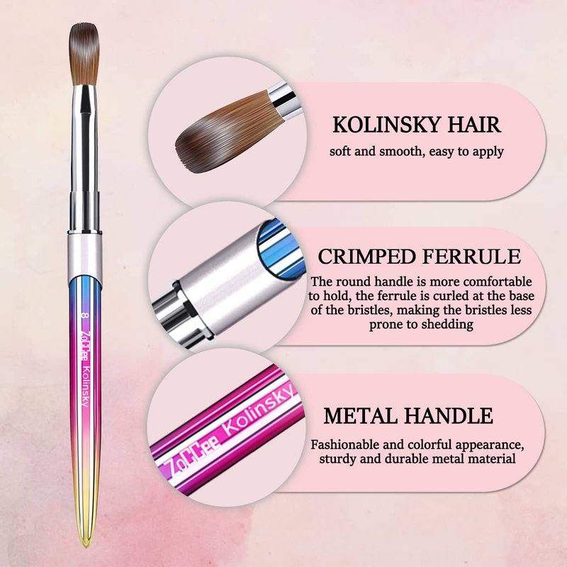 Acrylic Nail Brush - ZoCCee 100% Kolinsky Nail Brushes for Acrylic Application - Acrylic Powder Brush for Nail Art - Nail Brush Acrylic for Professional Manicure DIY Home Salon (#8, Gradient)