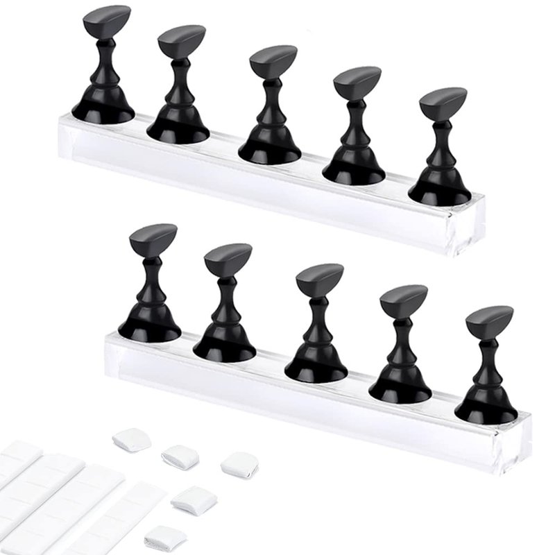 - What you will get: You will get 2 sets of acrylic nail polish display stands and Reusable Adhesive Putty Clay, (each set includes 1 nail stand base and 5 nail exercisers), enough to meet your nail training needs. The nail polish display stand for practice is made of high-quality materials, strong and durable enough for your daily use.