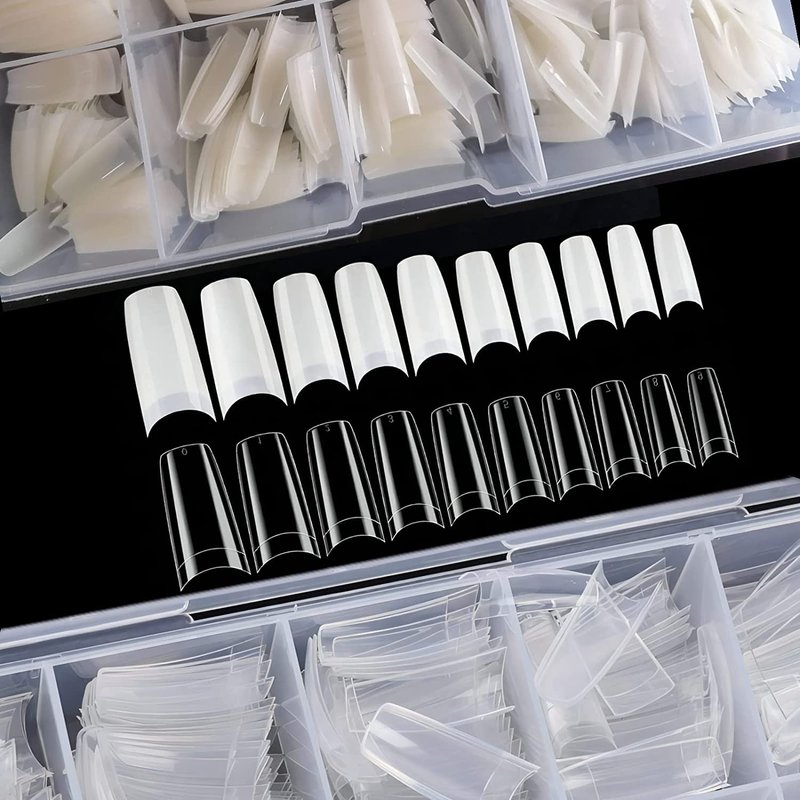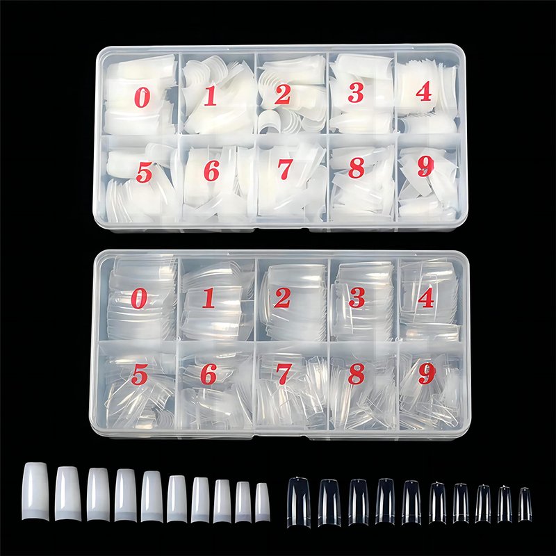 - 1000PCS half cover nail tips offer 2 Colors(Clear and Natural)10 different sizes with 50 nails,which is pre-numbered 0-9.So they're easy to keep track of, and convenient to choose the suitable size that fits your every finger.