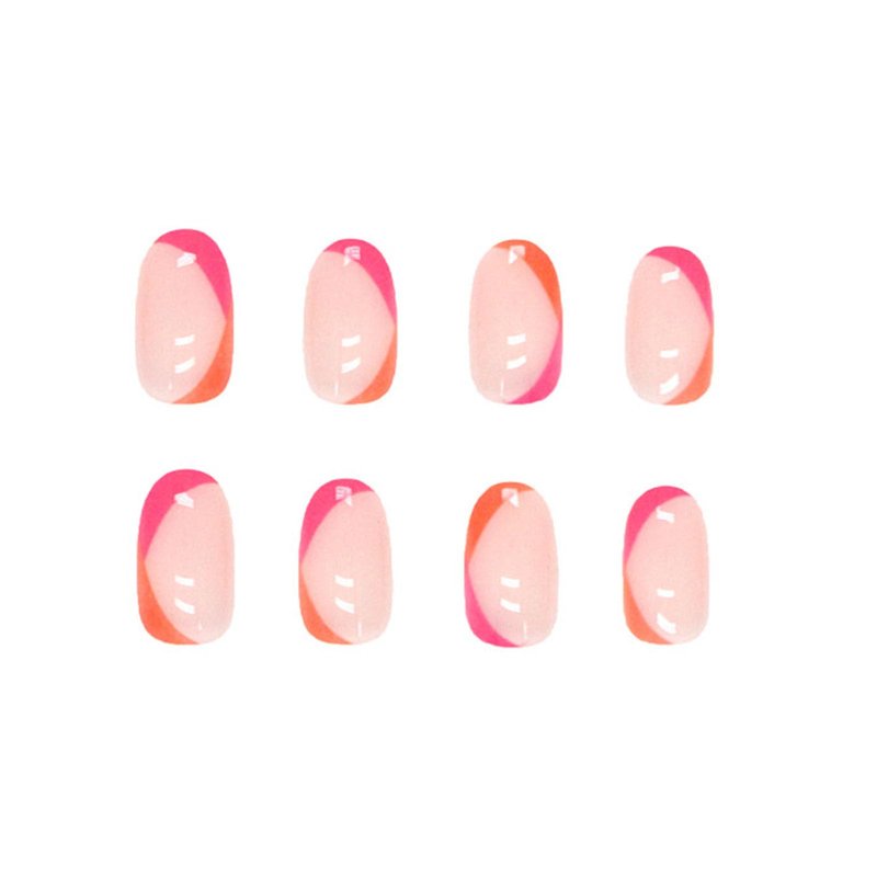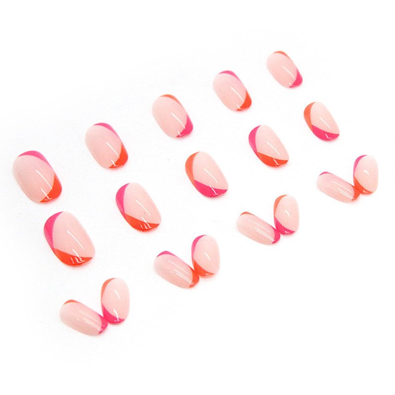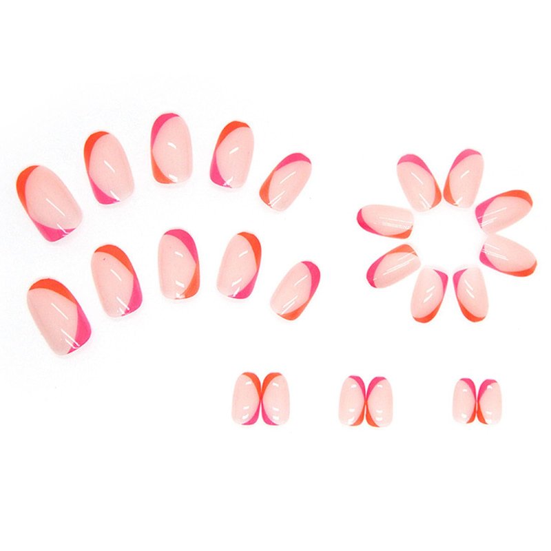Acrylic Press on Nails Short Oval Rose Red and Orange French Tip Fake Nails Press ons Light Pink Full Cover Stick on Nails Glossy Artificial False Nails for Girls 24Pcs