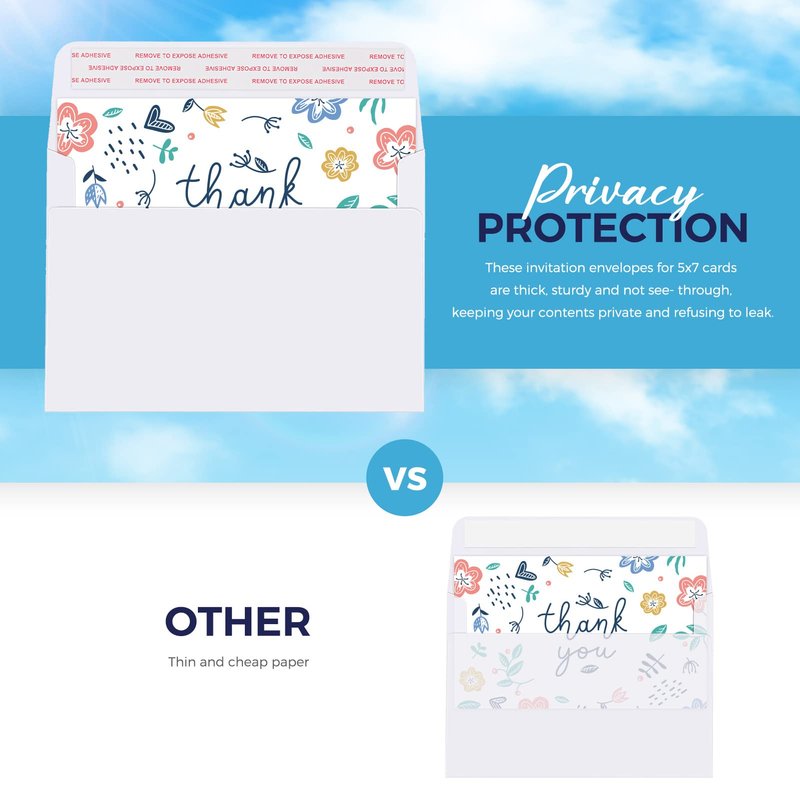 Please store the envelopes in a cool, dry place to maintain the quality of the adhesive strip. Whether it's for weddings, graduations, or other special events, our 5x7 Envelopes for Invitations provide a stylish and reliable solution. Experience the convenience and elegance of ACSTEP envelopes and make a lasting impression on your guests.