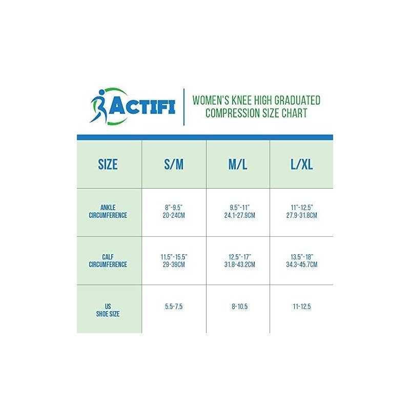 - MODERATE 15-20 mmHg GRADUATED COMPRESSION – The graduated compression provides maximum compression at the ankle with a progressive reduction through the calf promoting blood flow back to the heart.