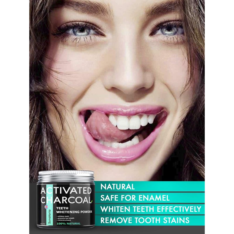 Discover the power of our Activated Charcoal Powder Teeth Whitening Kit, designed to remove stains from cigarettes, tea, wine, coffee, and plaque, giving you a whiter, brighter smile. This all-natural toothpaste alternative offers a safe, gentle whitening experience perfect for daily use. Our whitening gel alternative features an RDA score of 55, ensuring it doesn't damage your gums or enamel. The improved formula contains coconut charcoal, orange seed oil, coco oil, mint flavor, and orange extract, providing natural teeth whitening. Made in the UK, Sunatoria's teeth whitening products use the highest purity ingredients for effective tooth powder remineralizing results. Using our charcoal teeth whitening powder is easy and offers instant effects. Simply dampen your toothbrush, dip it into the powder, and brush for 2 minutes. Rinse well to enjoy a fresh mint flavor and a whiter smile effortlessly. This teeth whitening essence doubles as an enamel repair solution, providing a food-grade activated charcoal powder that acts as a powerful teeth stain remover. Our whitening powder not only whitens but also serves as a tooth remineralization powder, ensuring your teeth stay healthy and bright. Enhance your teeth care routine with our natural tooth powder, designed to regrow tooth powder and offer tooth remineralization. The powdered toothpaste, also known as charcoal toothpaste powder, delivers a comprehensive whitening and dental polish solution. For an effective and safe teeth whitening experience, try our coconut activated charcoal powder, known for its teeth whitening carbon activado properties. This charcoal teeth whitening product, also referred to as teeth whitening charcoal, ensures a radiant smile with consistent use. Choose our mineral tooth powder for tooth remineralization and teeth care. This dental polish and whitening teeth product provides a confident, bright smile using the power of activated coconut charcoal.