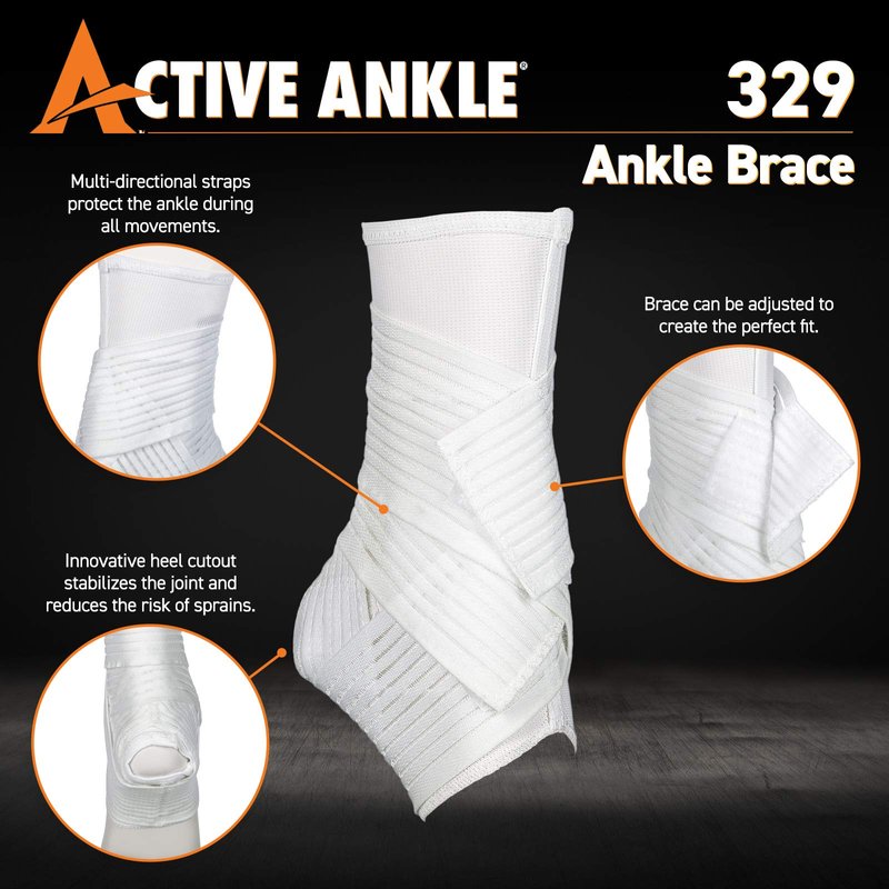 Active Ankle 329 Ankle Brace, White Ankle Compression Sleeve with Straps for Men & Women, Braces for Volleyball, Football, Basketball, Rugby, Protection & Sprain Support, Small