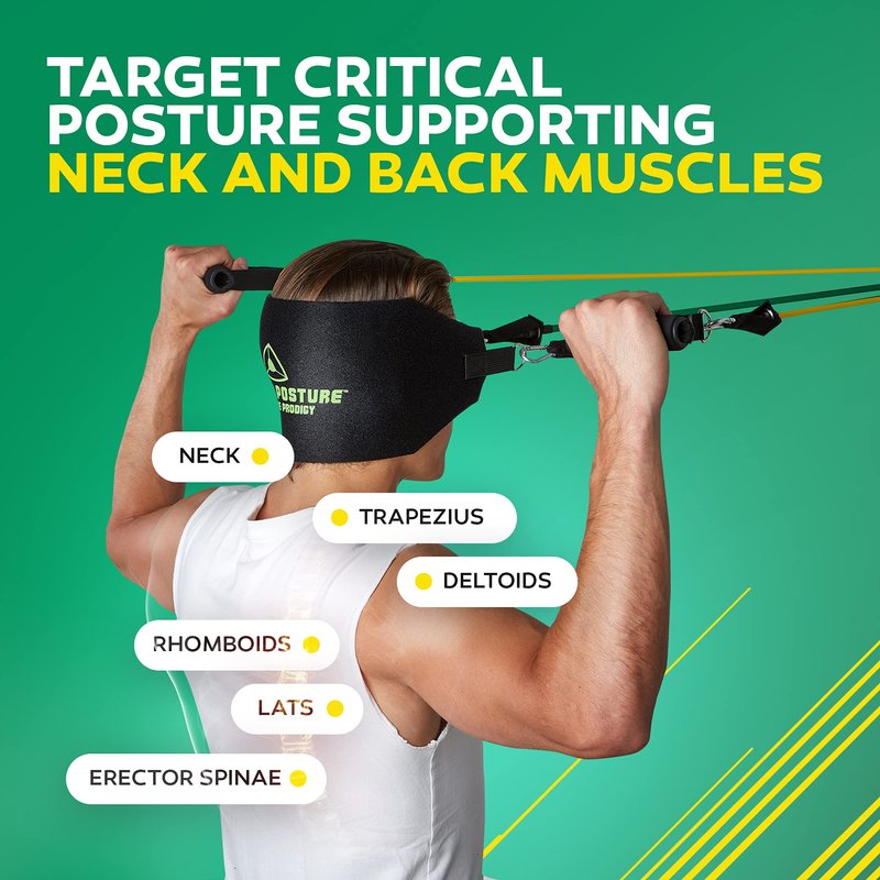 - Head Harness and Posture Straightener - The Active Posture Head Harness helps hold your head in a proper posture position while the bands add resistance for a both dynamic and static exercises. The entire system will help strengthen the major muscles of the neck, back and shoulders can often produce lasting pain relief and significant improvement of posture.
