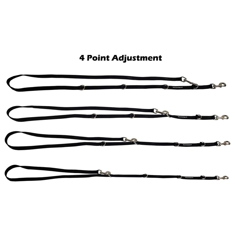 ActiveDogs Hands-Free Adjustable Service Dog Leash, 7.5' x.75 Premium Quality Crossbody K9 Training Lead - Black Nylon