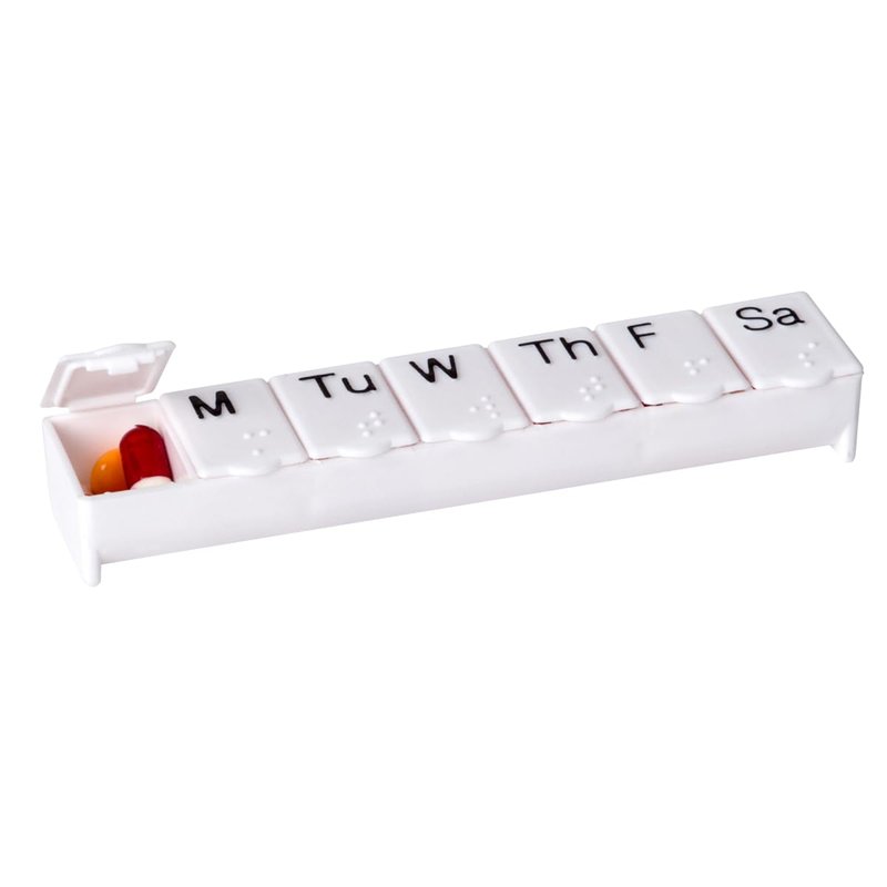 Acu-Life Weekly (7-Day) Pill Organizer, Vitamin Case, and Medicine Box, Small Compartments, White