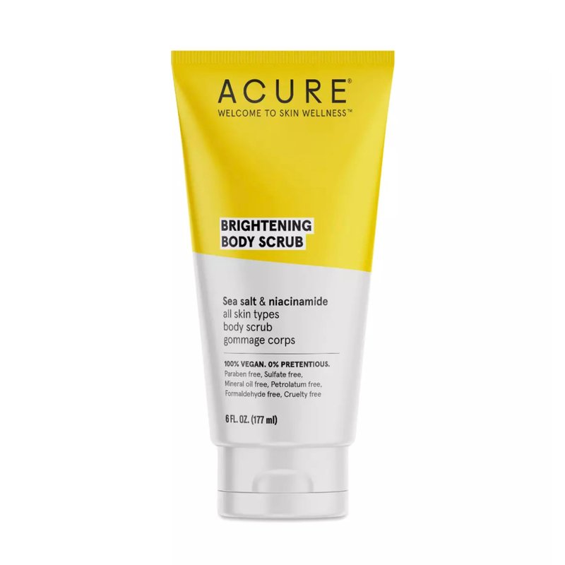 - SEA SALT & NIACINAMIDE BLEND (VITAMIN B3) - ACURE Brightening Body Scrub features a potent blend of sea salt and niacinamide. Sea salt exfoliates dead skin cells, promoting smoother, healthier skin, while niacinamide helps reduce signs of aging, leaving you with a youthful, radiant glow.