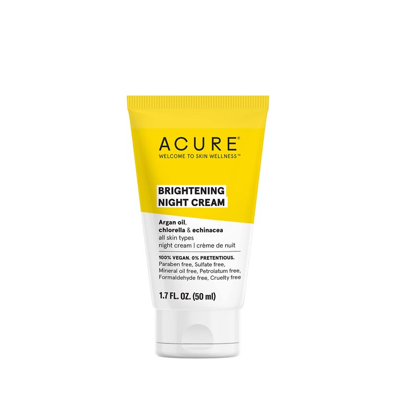 - The Brightening Night Cream incorporates argan oil, avocado oil, and chlorella for a rejuvenated, brighter appearance