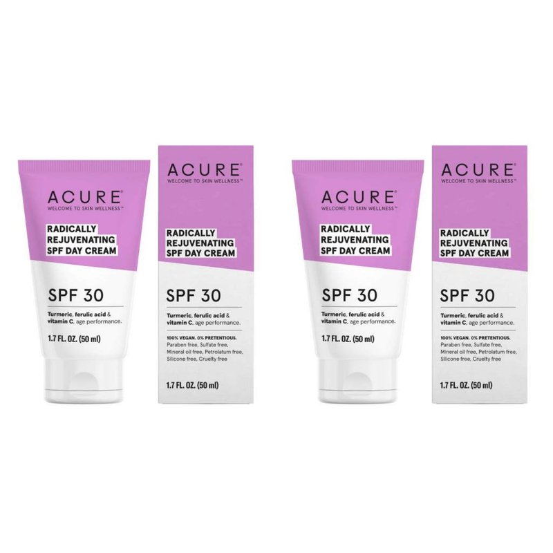 Acure Organics Radically Rejuvenating SPF 30 Day Cream (Pack of 2) With Aloe Vera, Argan, Vitamin C, Shea Butter, Coconut Oil, Turmeric Root and Blue Tansy Flower, 1.7 fl. oz. each