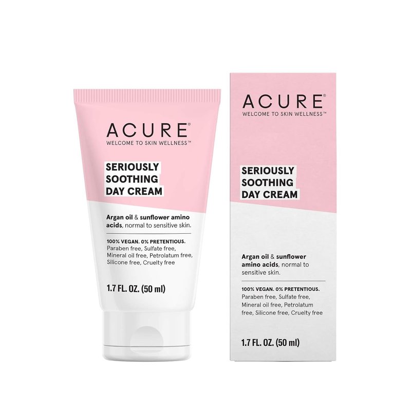 Acure Seriously Soothing Day Cream - Daily Hydrating Facial Cream - Moisturizer for Dry to Sensitive Skin from Argan Oil & Sunflower Amino Acids with Organic Chamomile - Vegan, Unscented - 1.7 Fl Oz
