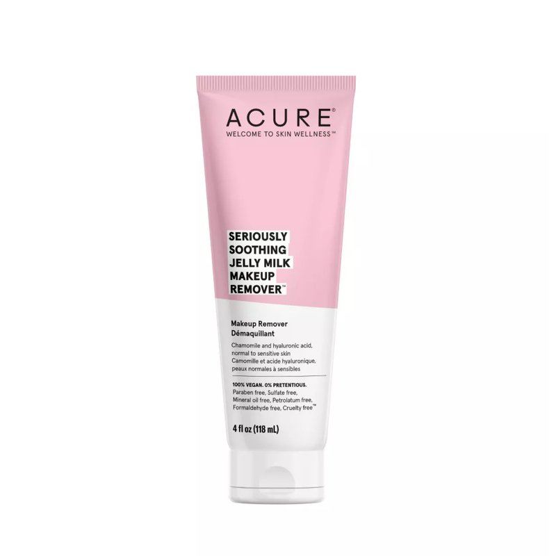 Acure Seriously Soothing Jelly Milk Makeup Remover - Waterproof Make Up Removal for Normal to Sensitive Skin - Moisturizing Finish - Milky Texture with Chamomile & Hyaluronic Acid -100% Vegan- 4 Fl Oz
