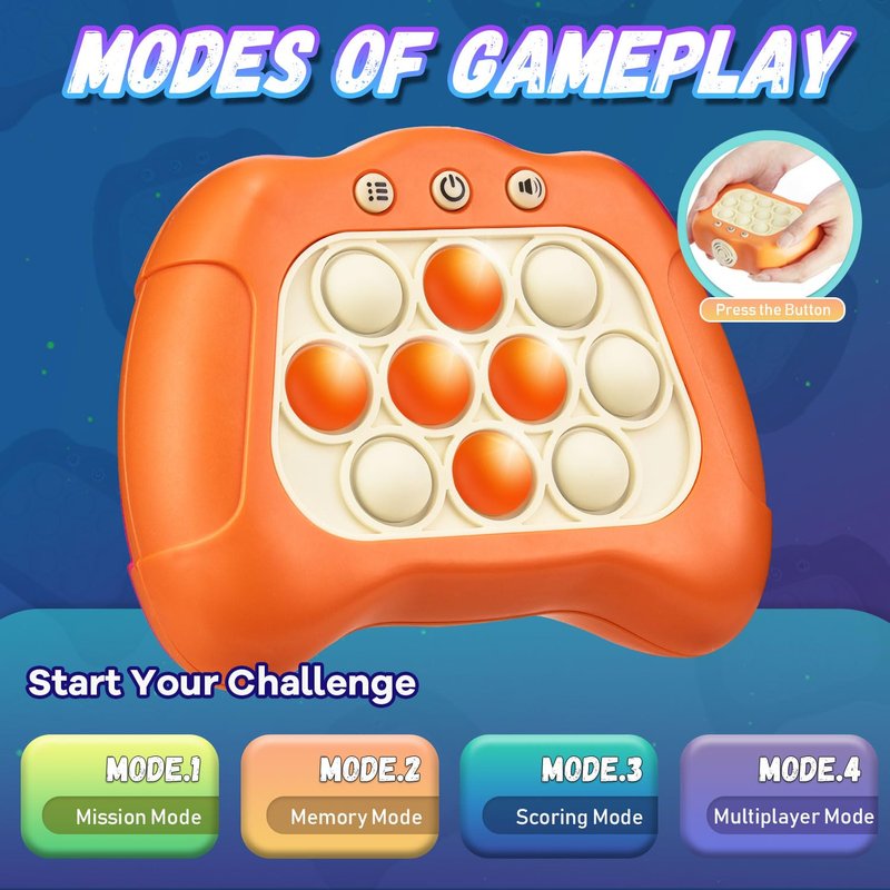 - 【Family Bonding or Stress Relief】: Our sensory game console is an excellent choice for family bonding and parties, as players can strengthen their emotional connections with a quick push game. This pop fidget toy is also suitable for adults, providing a fun way to relieve stress and bring joy.