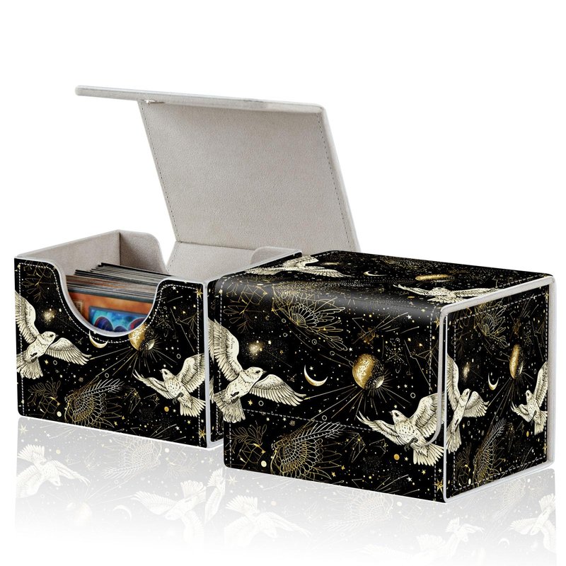 ACWDMKH for MTG Commander Deck Box,Card Deck Box for Trading Card Yugioh MTG Cards,Fits 100 Double Sleeved Cards,PU Leather Magnet TCG MTG Deck Case for Magic Commander Deck Box,Black White Bird