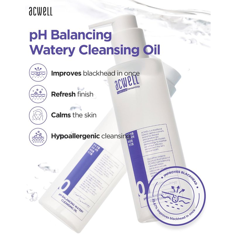 - 2-IN-1 CLEANSING OIL: Acwell pH Balancing Watery Cleansing Oil helps to smoothly exfoliate, melt blackheads, and remove makeup for soft, supple, and cleansed skin. Our plant-based cleansing oil also removes stubborn makeup and skin impurities.