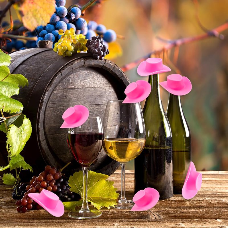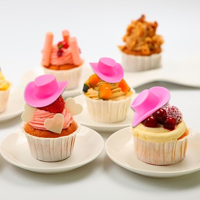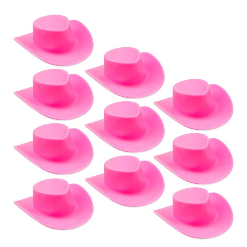 Acxico 10pcs Plastic Mini Miniature Cute Western Cowgirl Pink Cowboy Hat for Doll Dress Up Party Accessories