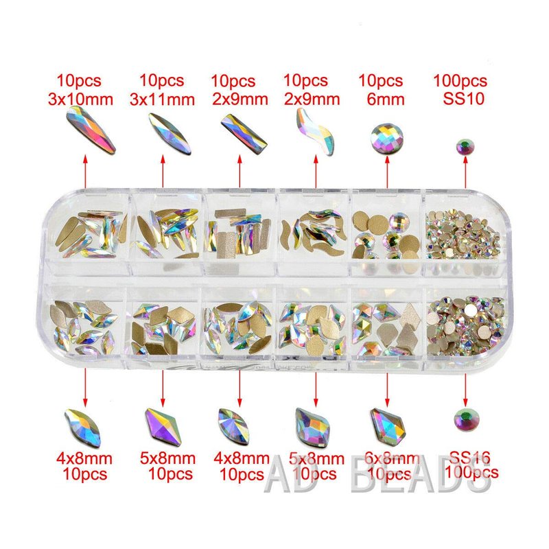 - Color & Shape: 4 colors to choose from and various shapes are in each box set, please choose from pictures. The mixed bag of 100 pcs are only in Clear AB color.