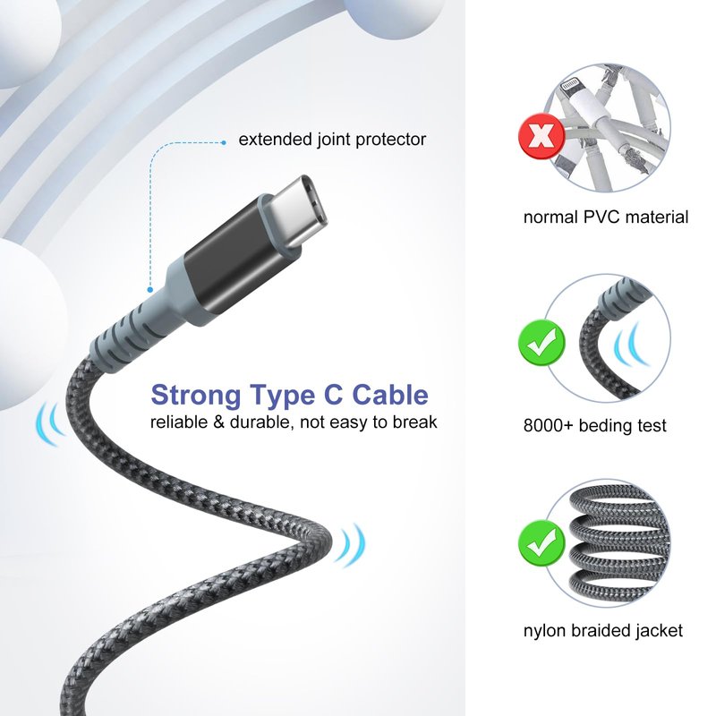 - ★★10Ft USB-C Cable Included: Comes with a 10-feet USB-C cable which is long enough to let you lie on the bed, stay on the sofa during charging. The nylon braided cover makes it tangle-free and durable. Prolonged SR protector extends its bending lifespan. This USB C charger supports fast charging, it’s a great partner of adaptive fast charger. The speed of data transfer can be up to 480Mb/s, without any error message, helps you work efficiently.