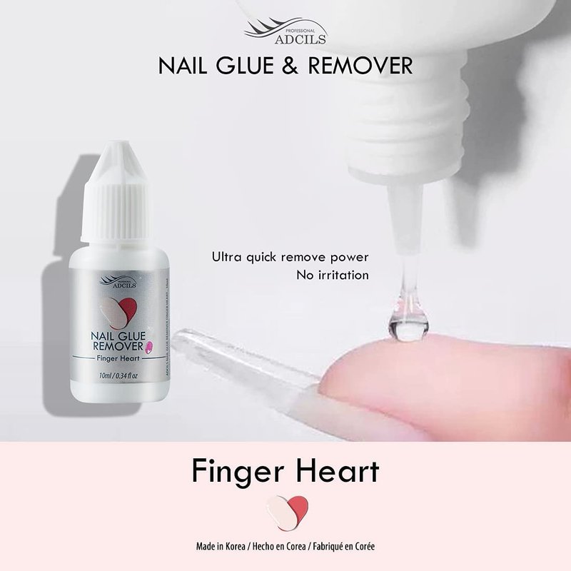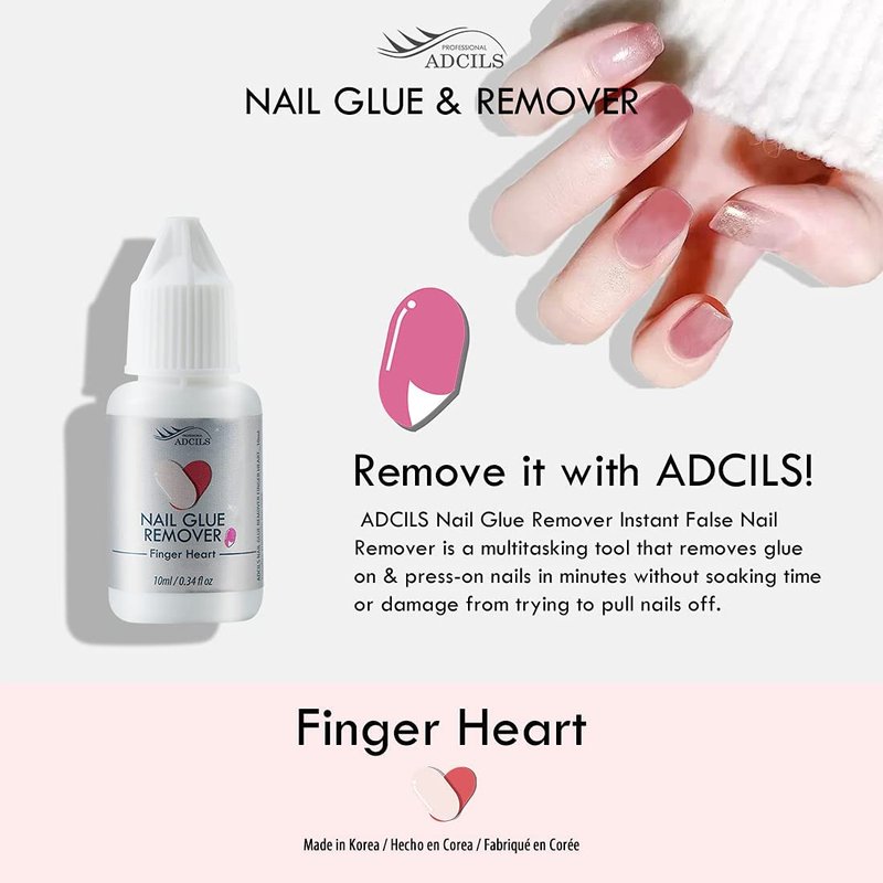 - ADCILS NAIL FINGERHEART GLUE REMOVER is a multitasking tool that removes glue on & press-on nails in minutes without soaking time or damage from trying to pull nails off.