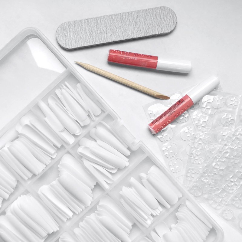 Remove the glue sticker and keep the fake nail tip for next time use