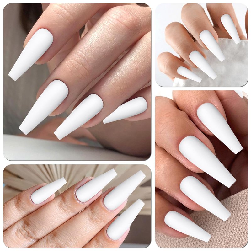 AddFavor 240pcs Coffin Press on Nails Long White Full Cover Fake Nails Matte Ballerina False Nail Tips for Women and Girls, White Nails