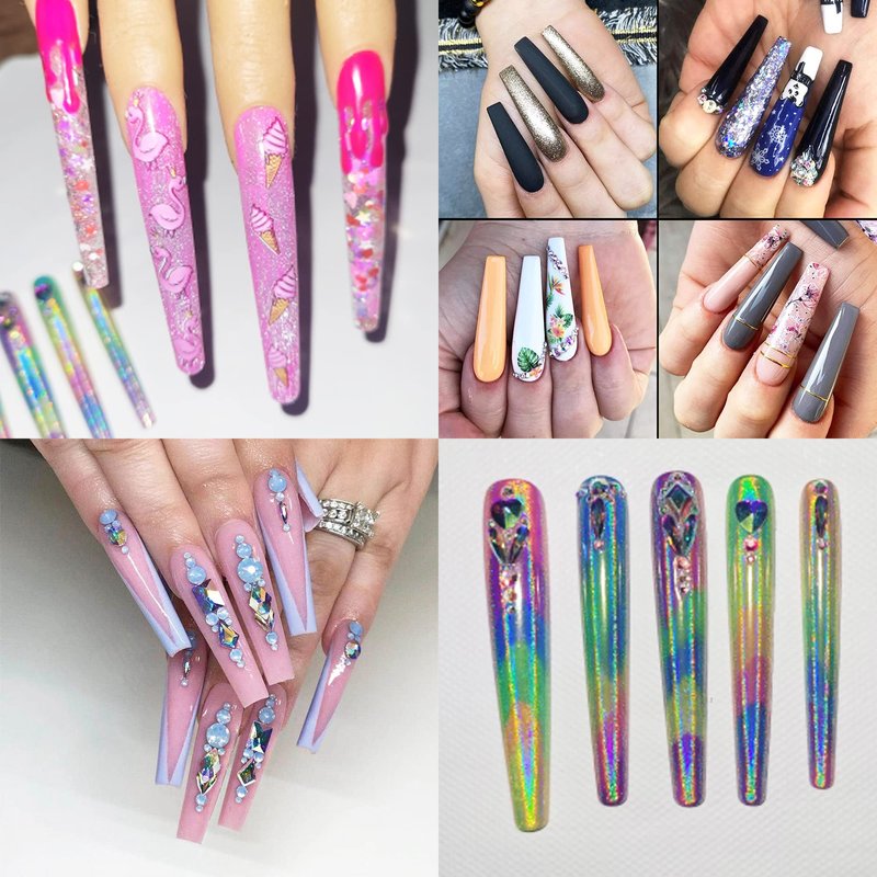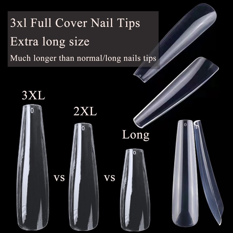 - 3xl ballerina coffin nail tips for acrylic nail professional, come with 600pcs/bag long full cover nail tips, xxxl extra long design, straight coffin shape, AddFavor nail tips are made of high-quality materials, with a certain thickness, strong and durable, not easy to break/deform/bend. Can wear 1-2 weeks