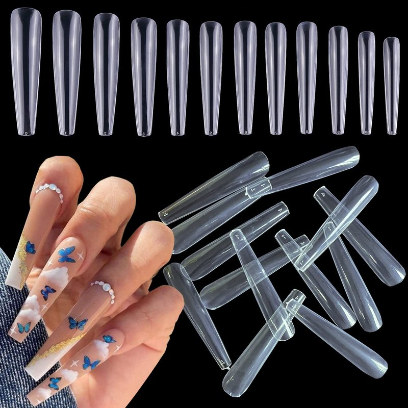 AddFavor 600pcs 3XL Clear Nail Tips Coffin Full Cover Ballerina Shape Extra Long Acrylic Fake Nails Professional False Nail Tip for Salons & Home DIY, 12 Sizes