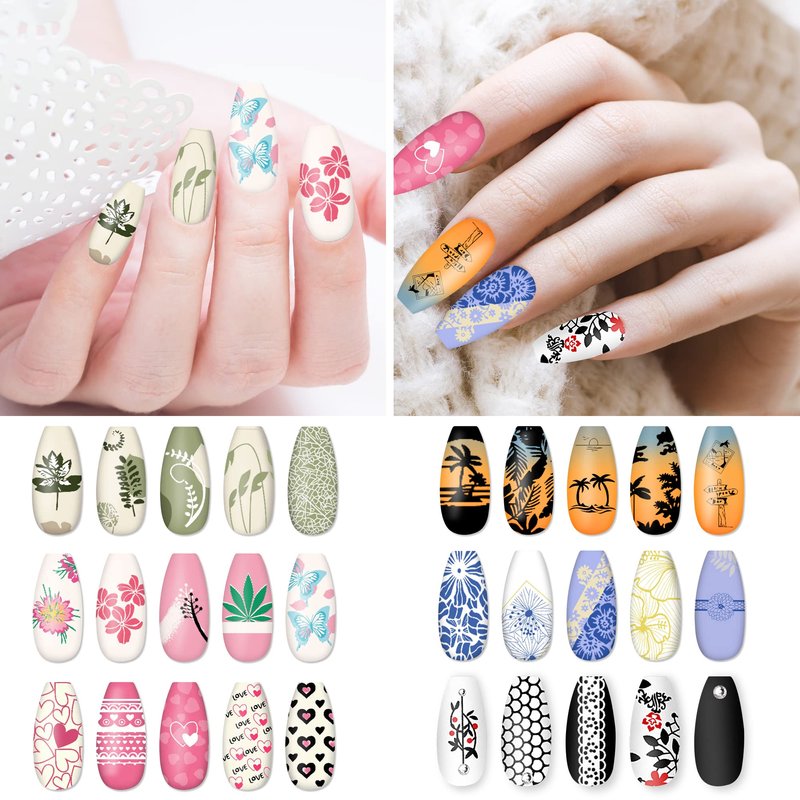 - Various pattern, each nail art template contains various kinds of design, such as flower, leaves, geometric, star, lace, butterfly, maple etc. Allows you create endless summer nails arts designs.