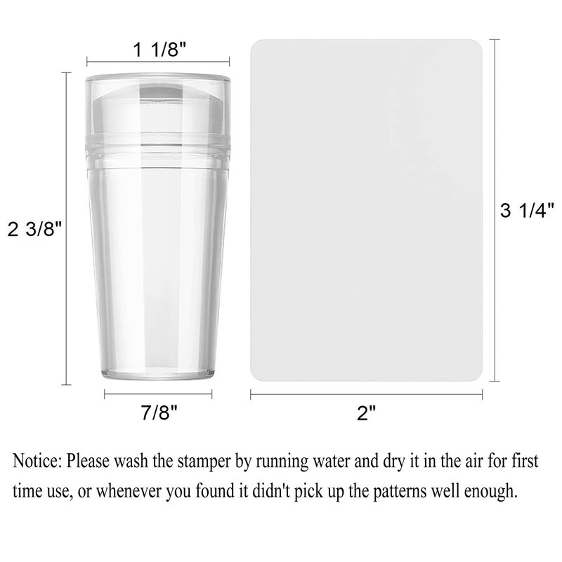 Notice: Please wash the stamper by running water and dry it in the air for first time use, or whenever you found it didn't pick up the patterns well enough