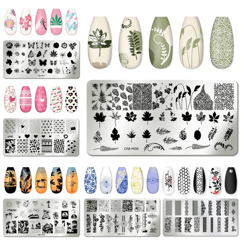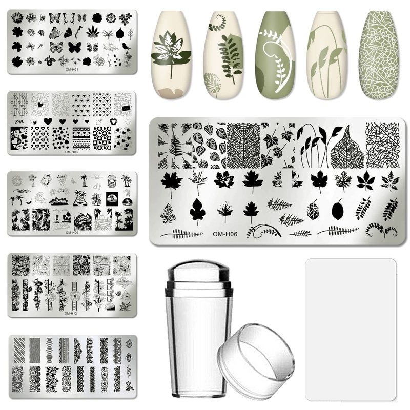 - Summer nail stamping plate kit, you will get 6pcs nail art stamper plate, size 6*12cm. 1 clear silicone stamp and 1 plastic scraper. Great manicure tools for nail salon and home nail art designer