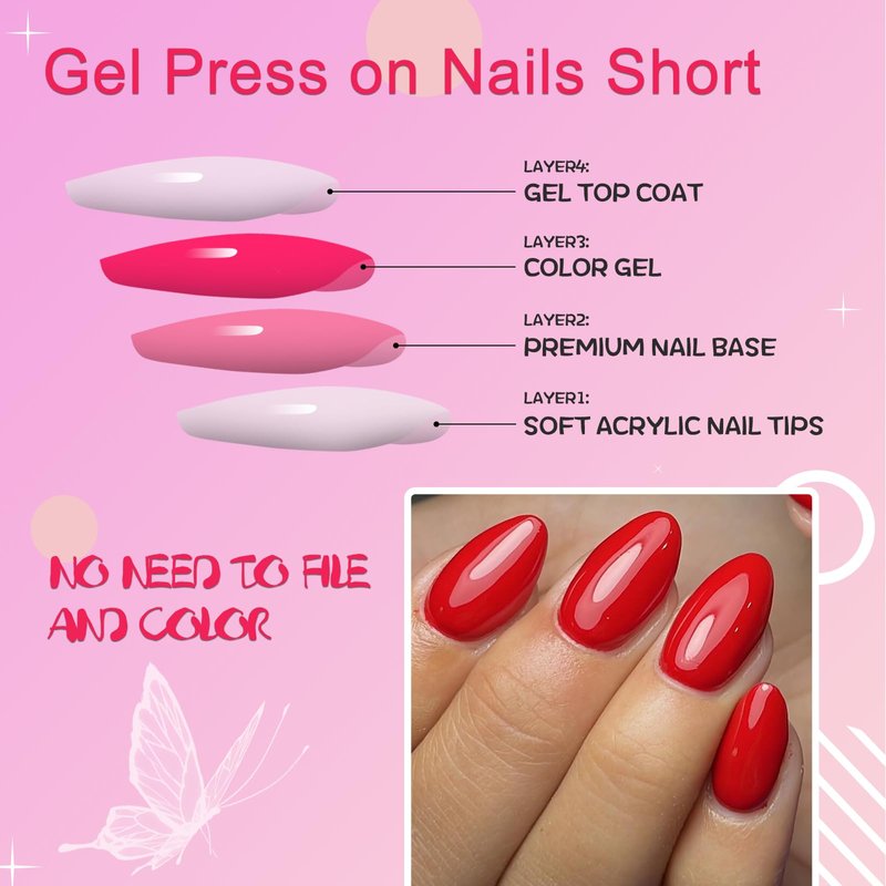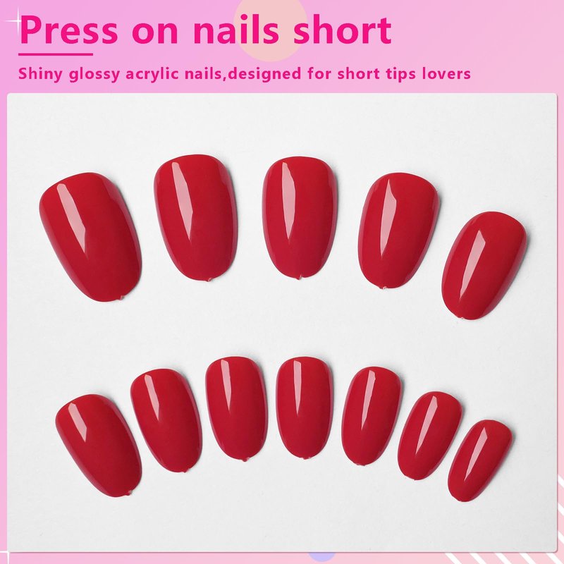 - Natural & comfortable to wear: The oval short fake nails are designed to provide a natural look when worn. Full press on oval nails with a thin and slight curve on the nail bed provide a comfortable fit with no stinging sensation. Short red nails with thicker fingertips ensure your nails will not break or split. They are thinner at the cuticle for a seamless look and a natural fit.