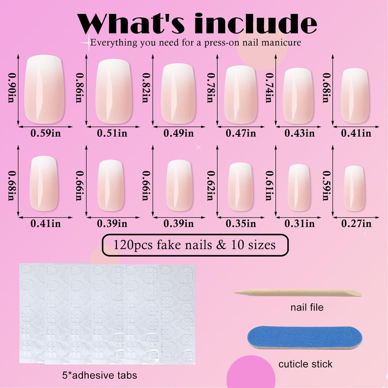 - Save your time to design: handcrafted square gel nails feature french style design, press on nails short nails are designed with classic white pink ombre color, full cover short square shape nails. And fake nails with thicker fingertips ensure your nails will not break or split! Thinner at the cuticle for a seamless look and natural looking fit, making your nails more elegant and fashionable