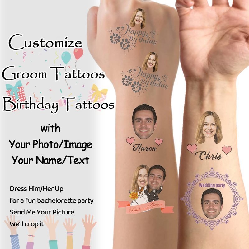 - PREMIUM QUALITY: Tattoos will last longer if left untouched, depending on where applied. Our face custom tattoos are non-toxic, fashionable and safe to use on skin. This photo temporary tattoos are truly a blast, the perfect decoration accessories and gift for the holiday, party, wedding, birthday, bachelorette, show your personality.
