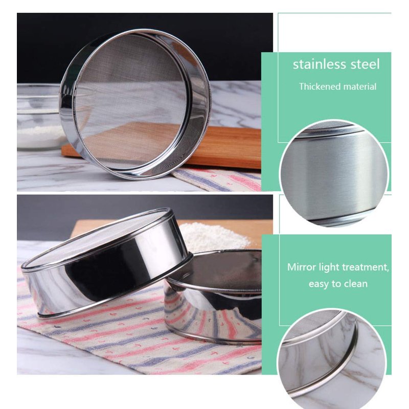 - đ„ăHigh QualityăThe powder sieve is made of high quality 304 stainless steel, Durable construction, It wonât rust, corrode, bend or warp and durable for long term. lightweight and strong.