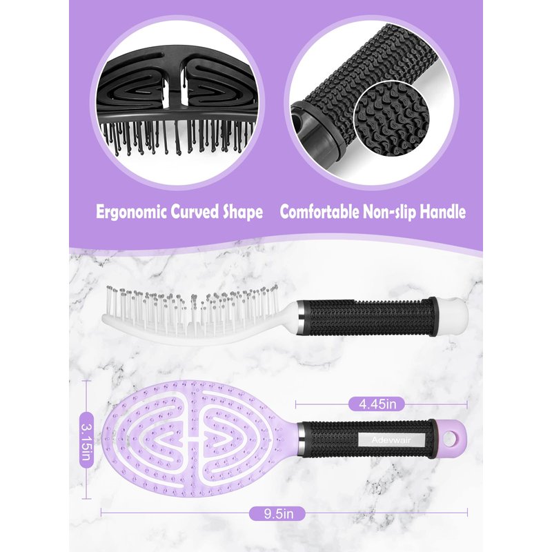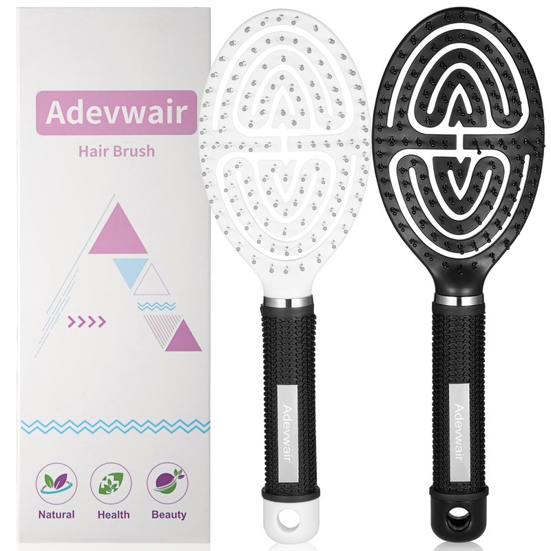 Adevwair Hair Brush-2 Pack Curved Vented Hairbrush for Faster Blow Drying No Pulling Detangling