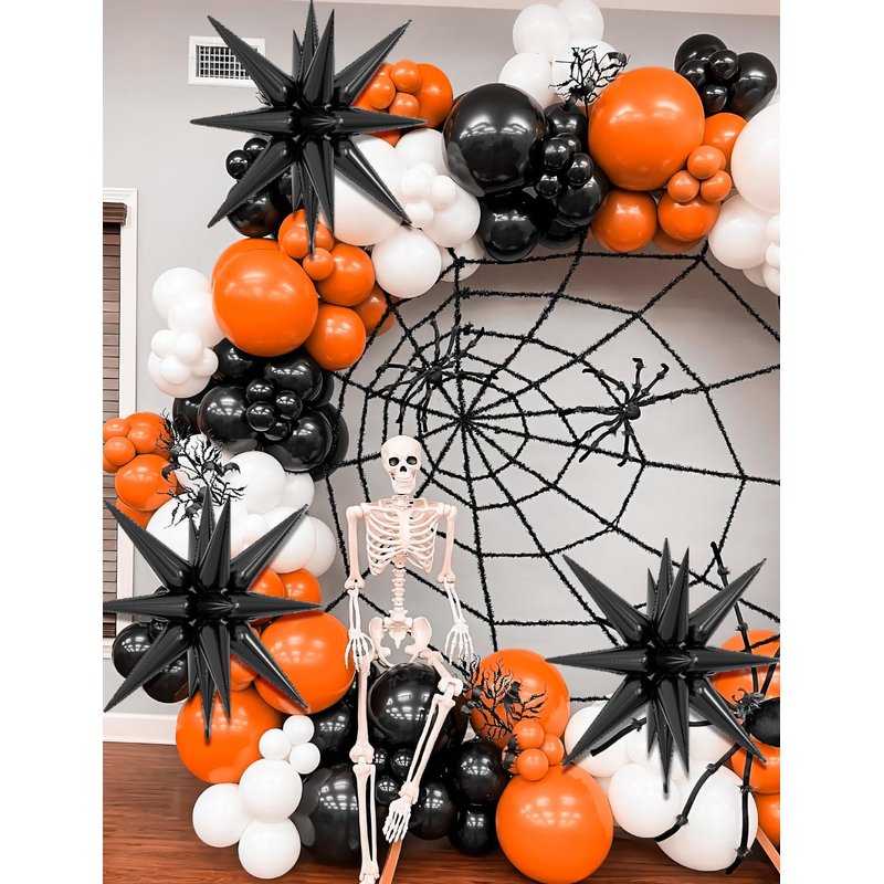 - 4D Black Starburst Balloons: These black mylar balloons are made of high quality aluminum film materials,making black foil balloons look shining and exquisite, sturdy and keeps inflated for long time.shining and exquisite design add party more color to the halloween party.