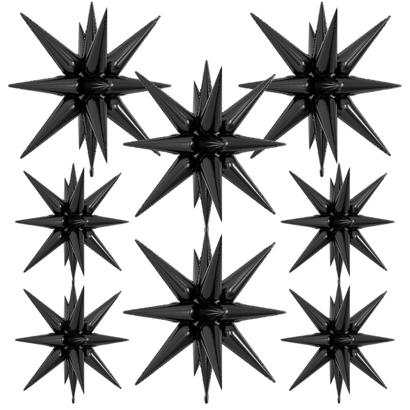 - Black Mylar Balloons: The black spike balloons can be hung, decorated on the party backdrop, or combined with various balloons.The shiny explosion star balloons is ideal for any theme party decorations like birthday, new years, wedding, baby shower, bachelorette party, and other celebrations.