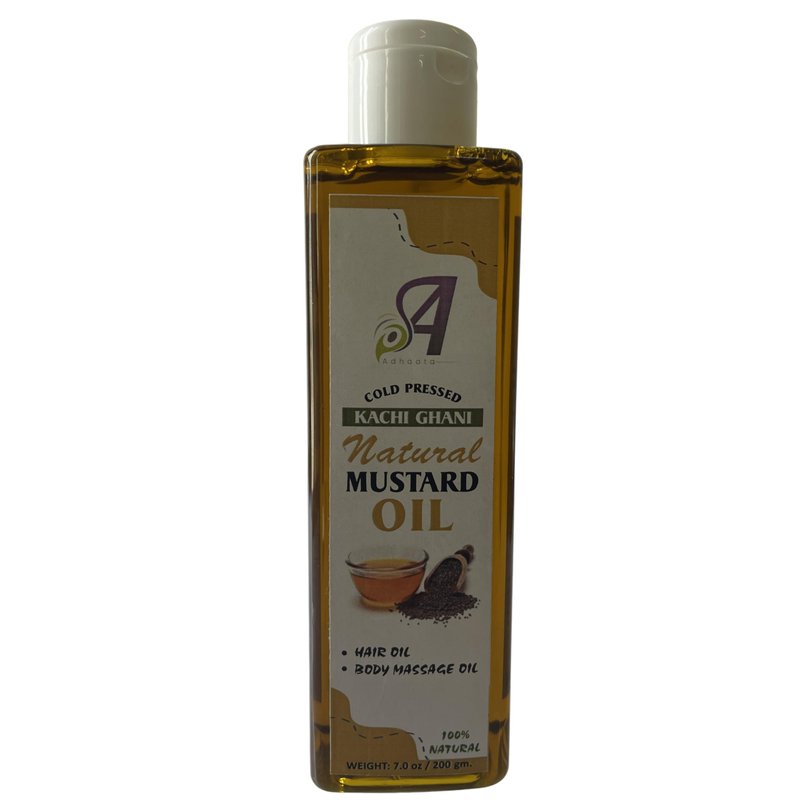 ADHAATA Mustard Oil | Kachi Ghani Mustard Seed Oil | Brassica Juncea | Unrefined | For Hair Growth | For Skin | For Massage | 100% Pure Natural | Cold Pressed Mustard Oil 7 Fl oz - (200 gram)