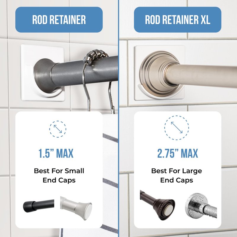 - Choose The Perfect Fit for Your Shower Rod - Be sure to select the correct size for your shower rod. Our Small size shower rod holders for wall no drill fit rods up to 1.5" in diameter, while our Large size fits curtain rods up to 2.75" in diameter at their ends. Upgrade your Shower Zen today with Adherion's adhesive no hole curtain rod holders