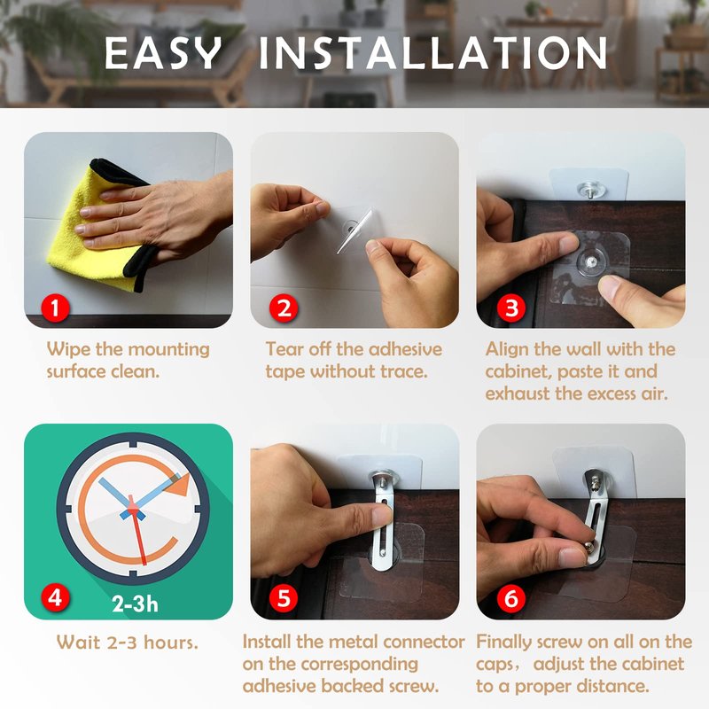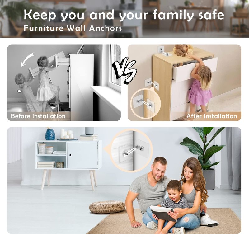 - 【2023 New No Screw Furniture Anchors】No drilling or tools required, our baby proof furniture anchor adopts heavy duty self-adhesive pads that have been tested for strong hold, making it easy for you to paste and remove without damaging the wall.