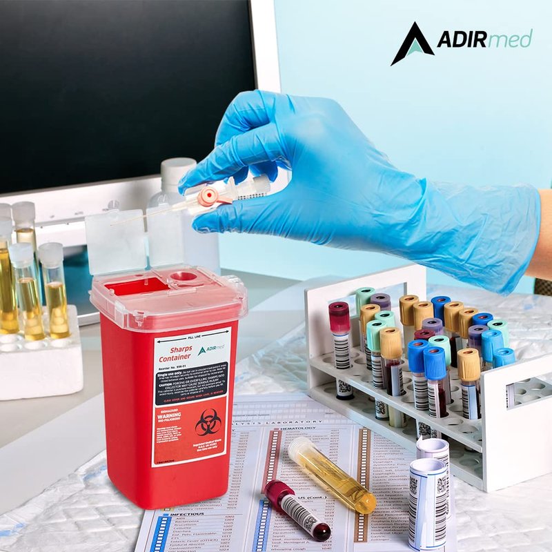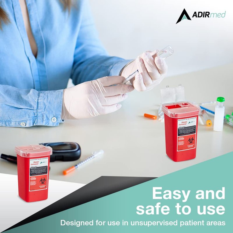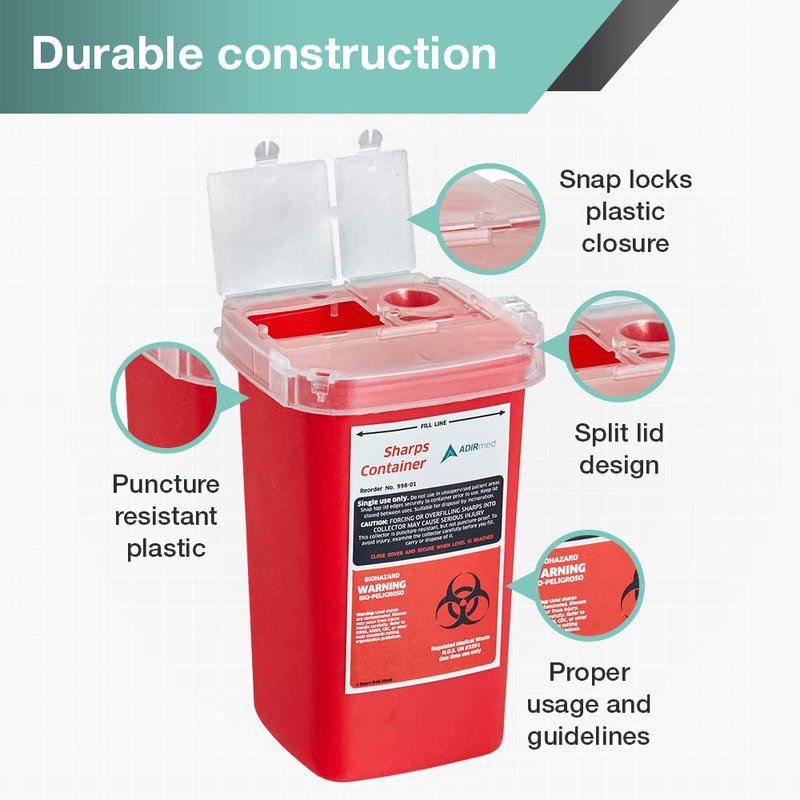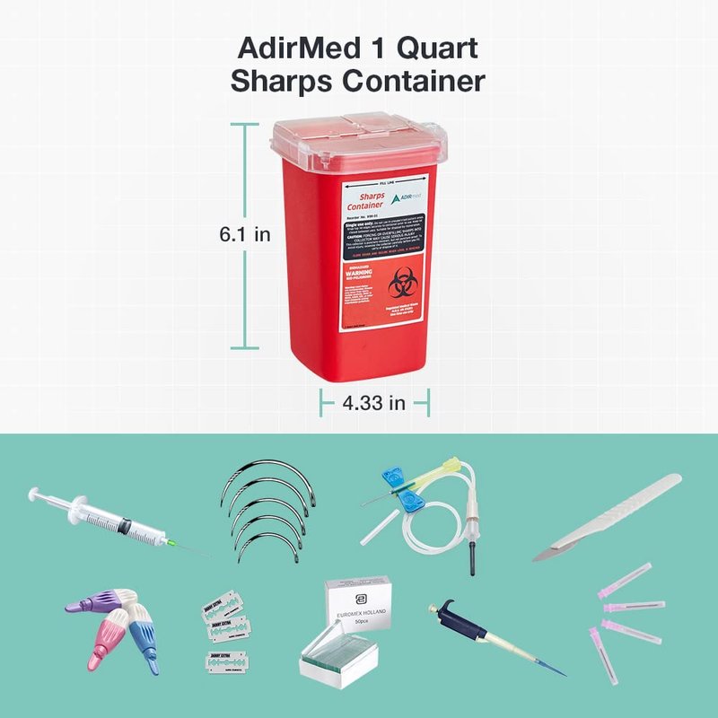 AdirMed Sharps Disposal Container with Flip Open Lid - Biohazard and Syringe Disposal Container - Ideal for Home, Clinic, Office, Barber Use with Flip-Open - (1 Quart, 6-Pack)